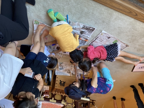 まずは妙経寺の小山副住職の紙芝居からスタートです。力作の紙芝居に子ども達も全集中です。毎回のことですが、紙芝居はすべて手作り、ストーリーも、最後のオチもすべて小山副住職がおつくりだとか!