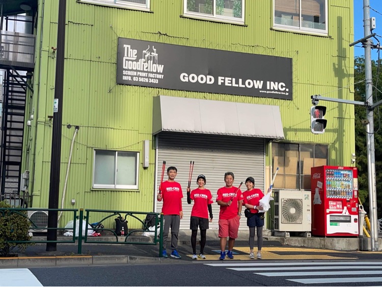 わたしたちのTシャツを作ってくれた、グッドフェローさんからスタートして、亀戸9丁目、京葉道路から丸八通りをキレイにしちゃいました。