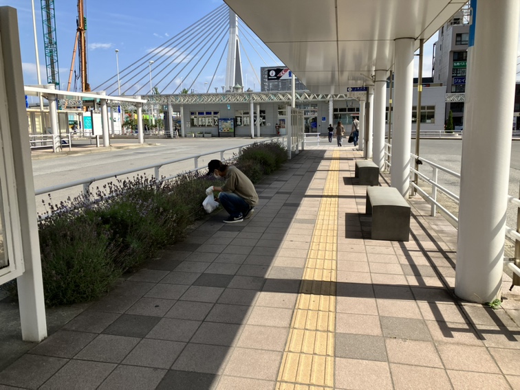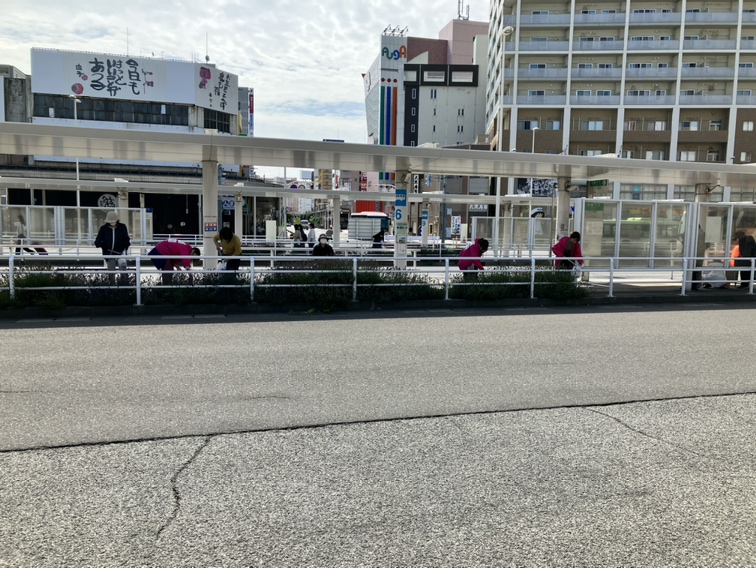 今日はバス停や青森駅前公園、歩道を入念に清掃しました。