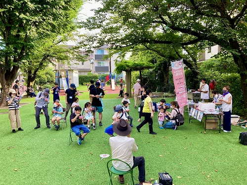 人工芝がきもちいい新道公園。今回も初参加の親子連れがたくさん来てくれました。