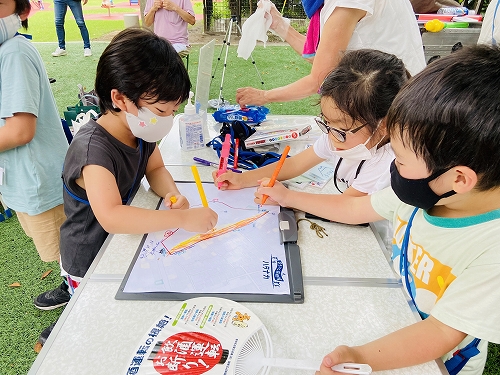 ゴールしたらお約束の今日の振り返りマップのカキカキです。感性豊かなアート感覚いっぱいのマップが出来上がりました! そして、ゴールでは全員にかき氷の振る舞いが町会からありました。