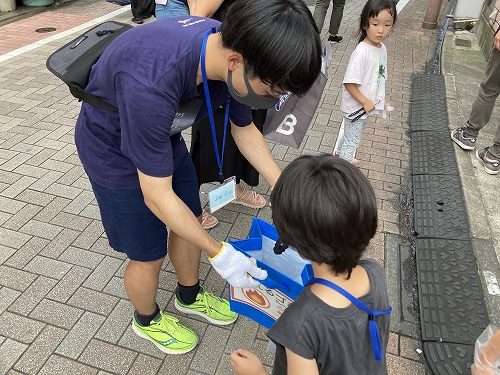 子ども達は小さなゴミも見逃さず、根気よく拾てくれました。「もえるゴミ~」と元気に、燃えるゴミ用の分別バッグを持っている大人に声を掛けます。