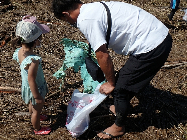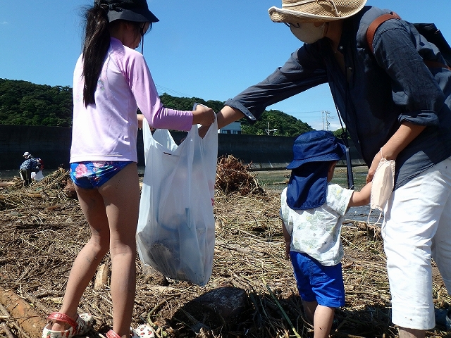 アース・キッズ 〜秋のアマモ場で生きもの探し〜の後半、ご参加いただいた皆さんにご協力いただき、ビーチクリーンを実施!