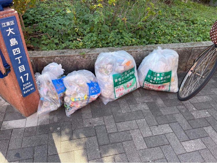 拾ったゴミの袋数と可燃 / 不燃の割合