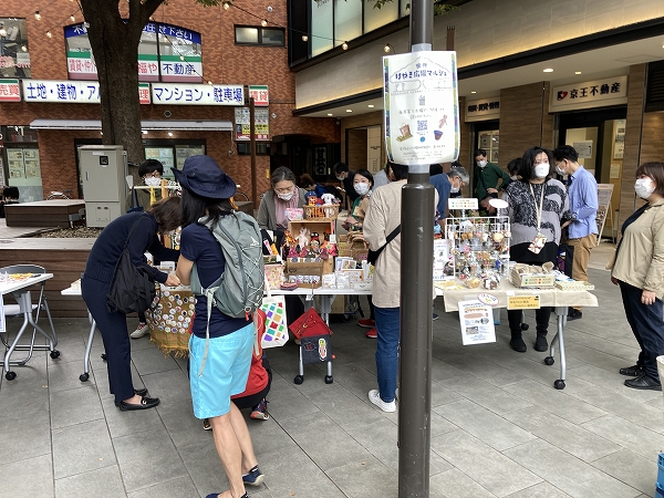 ゴールのけやき広場では、京王電鉄さんが今回から毎月第2土曜日に「笹塚けやき広場マルシェ」を開催していました。主役は地域の福祉作業所の皆さんの作品です。とってもカラフルで楽しいバッジやマフラー、お菓子もとってもおいしかったです。ゴミ拾いとの小さな交流の輪もこれからも楽しみです。次回は11月12日、お楽しみに! マルシェ↓