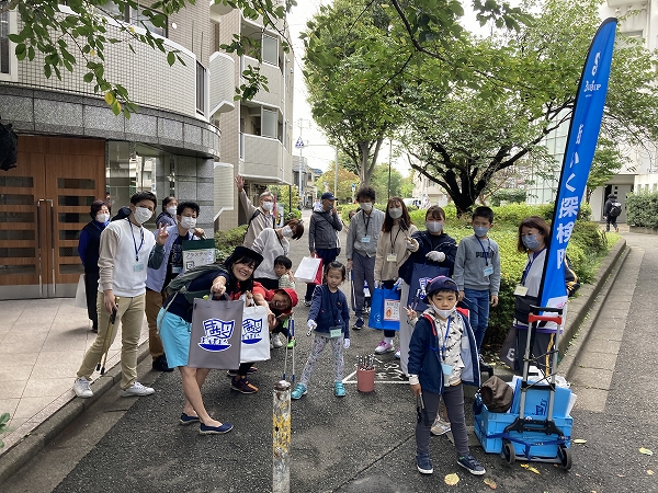 活動中に記念撮影。親子さん、民生委員さん、区議さん、保育士さん、地域サポート団体の方と純真無垢なこども隊員たち。この活動はゆるーく、でもながーく続けたいと思います。記念撮影↓