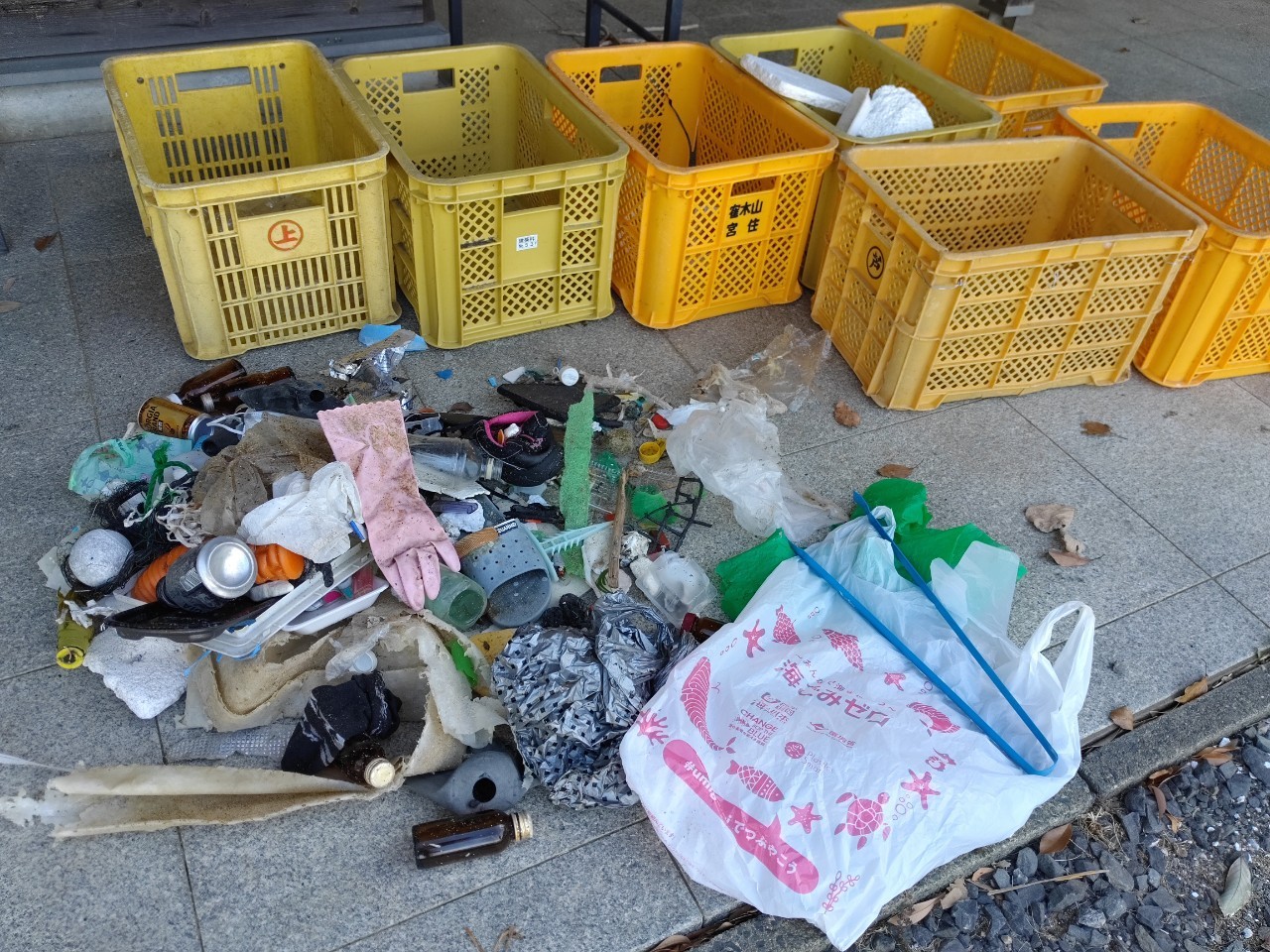 拾ったゴミの袋数と可燃 / 不燃の割合