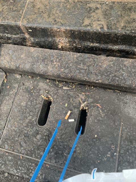 桜田通りのような大きな道沿いでも、植木の中や看板・バス停の椅子といった物の陰に目を向けると、ティッシュやチラシ、何かが包装されていたようなプラスチックごみがすぐに見つかります。