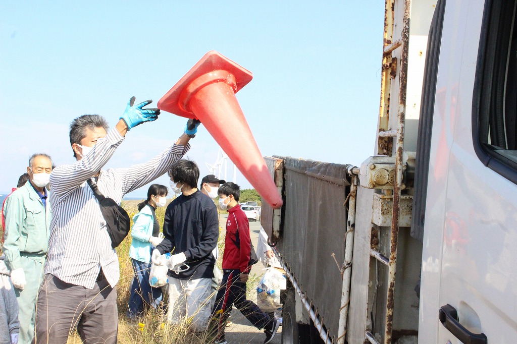 田原市民祭りや地域の子供会、市民館祭りなどが重なって隊員の参加は少なくなりました。それでも、岡崎、トヨタ、安城、豊橋からの一般参加者に加えて三河港湾事務所からの参加者やドリームの会、パチンコオータさんの参加で65人となりました。ゴミの総重量は220Kg。キャップの数は356個