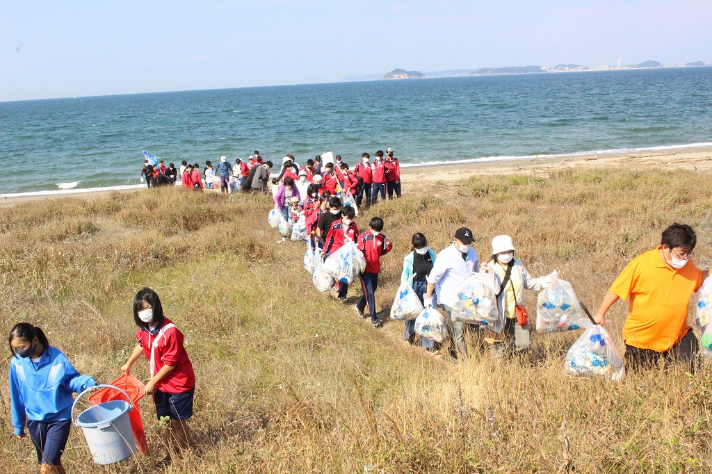 西の浜はゴミ箱じゃない!をスローガンに毎月行っている西の浜クリーンアップ活動でした。