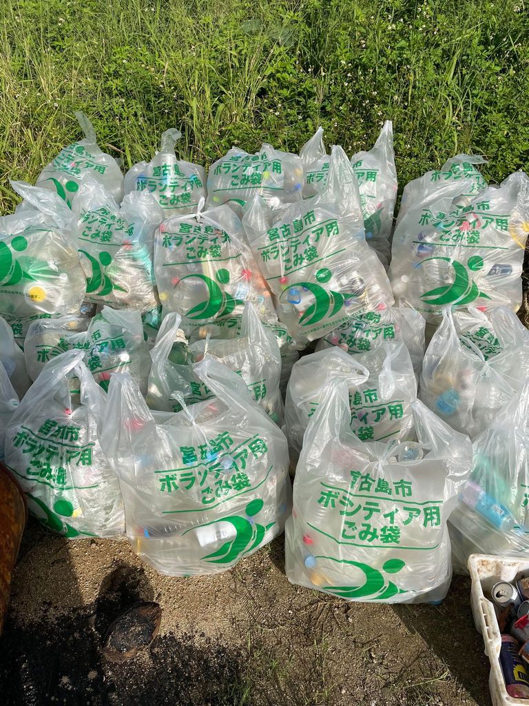 燃えるゴミ59袋・ペットボトル33袋・丸ブイ60個・漁具3袋・ビン61個+3袋・カン1袋・蛍光灯3本・ライター33個