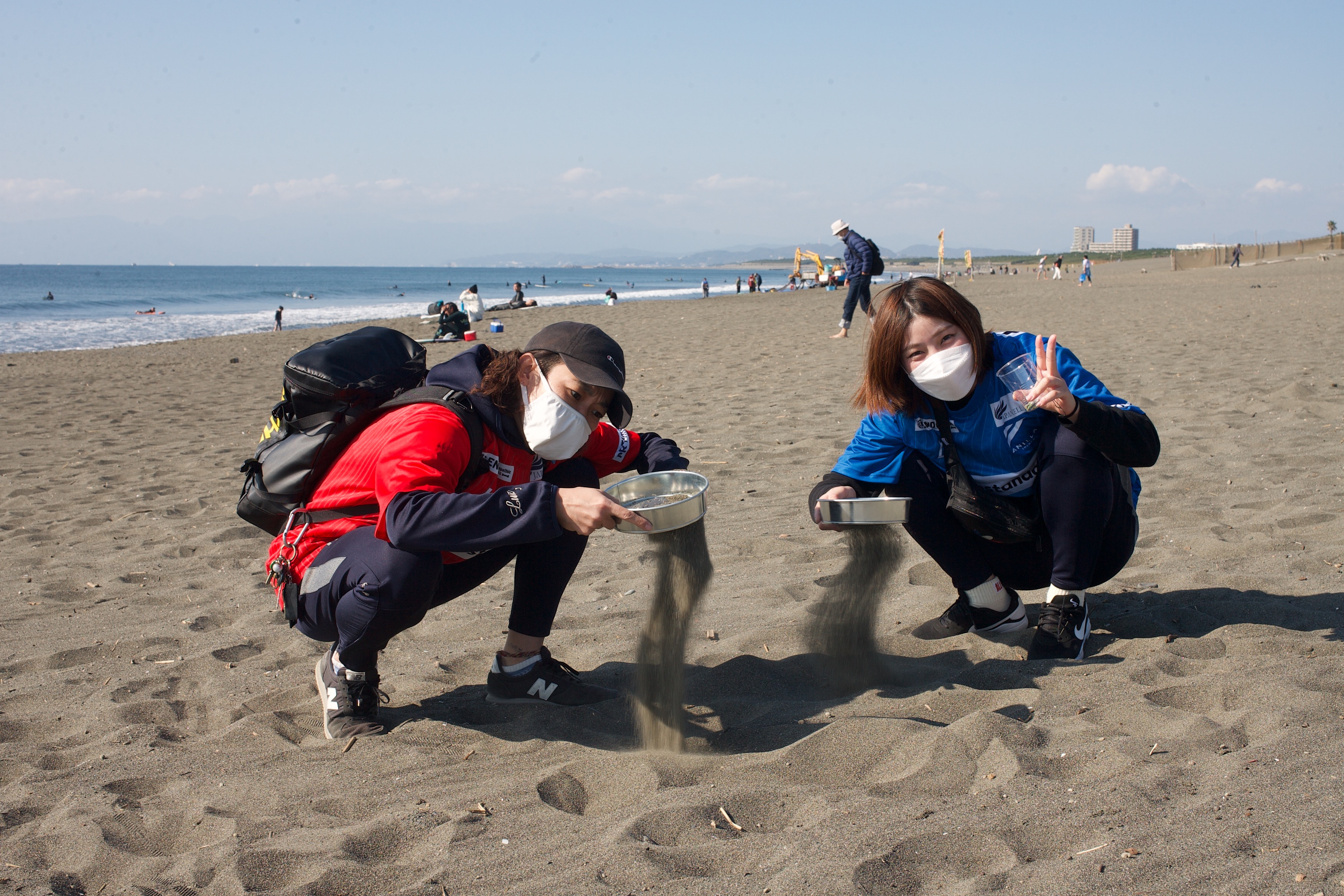 いつも参加してくれているアニージャ湘南の選手たちもマイクロプラスチック探しをしてくれました。