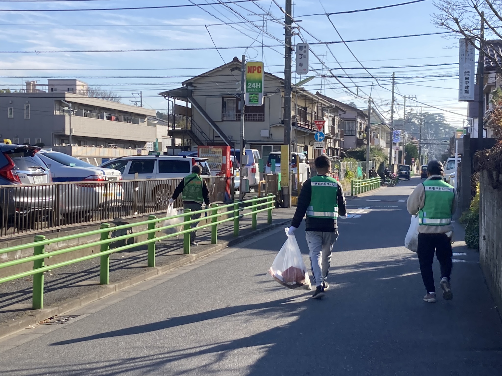 ゴミ拾いと合わせて地域の方へのあいさつも行いました。