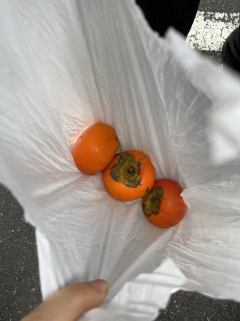 はたまた目黒川沿いの植え込みで、こそっと置いてある3つの柿を発見。