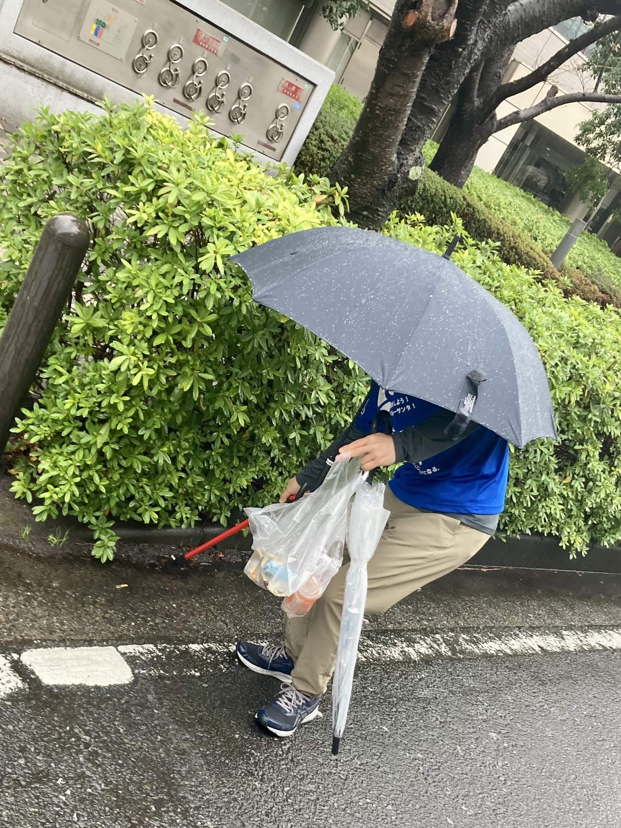 交通に気を付けながら、傘を差し、2人で小一時間のゴミ拾いを敢行しました。