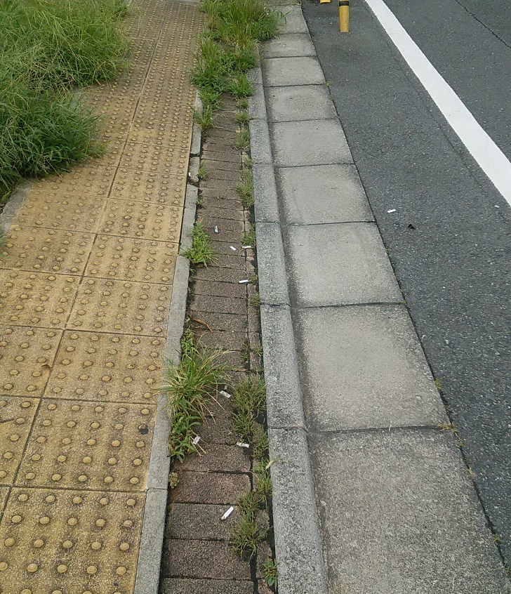 タバコの吸殻が道路沿いに縦1列に落ちていました。